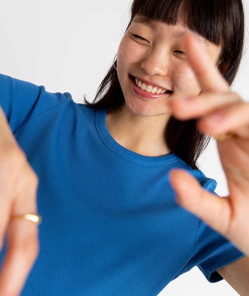 • Leicht geripptes T-Shirt in einem schönen Blau