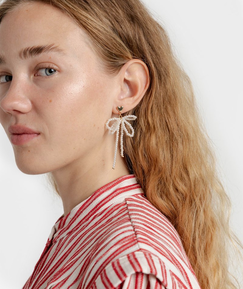 EBBA Ohrringe Gold Weiß Perlen Schleifen