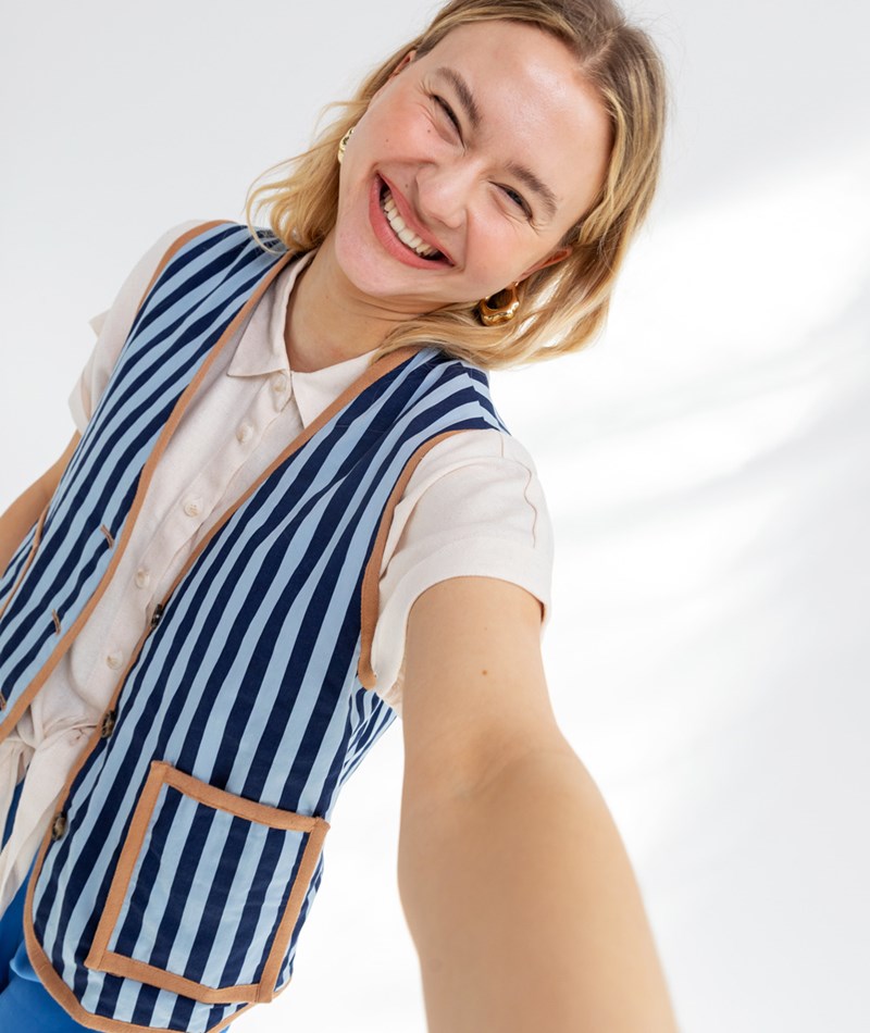 • Gestreifte Weste in Dunkelblau und Hellblau