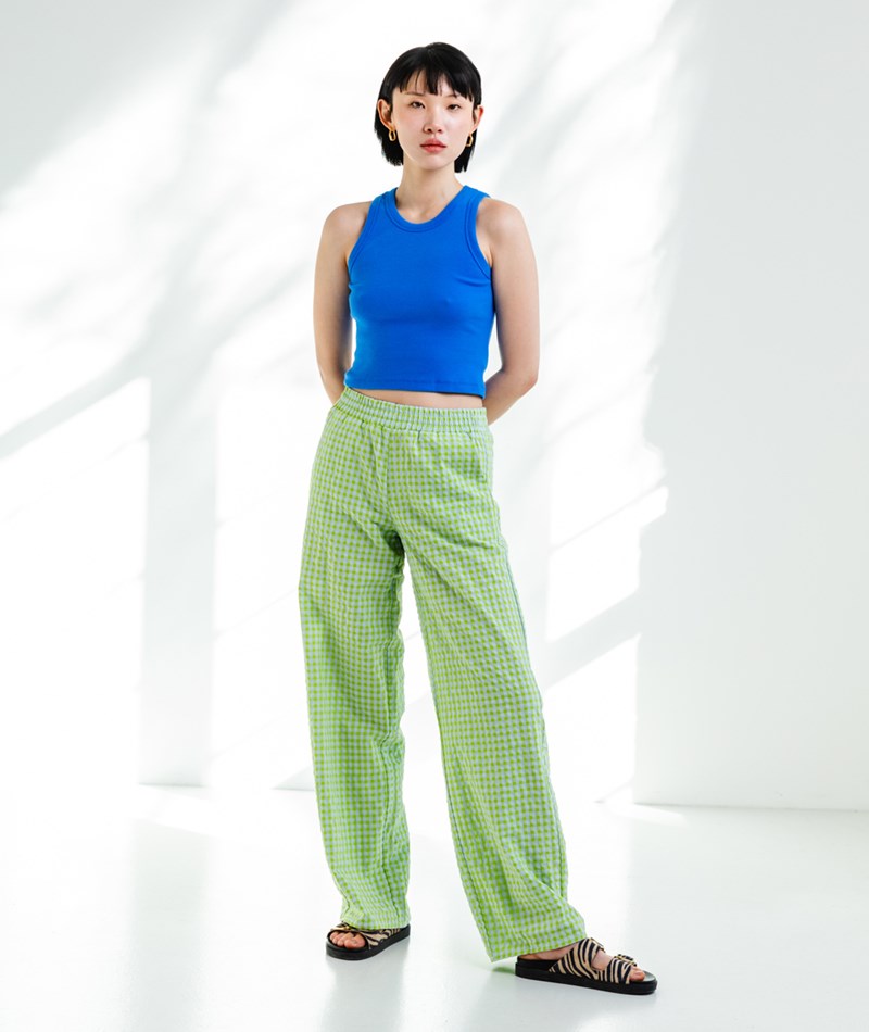 • Karierte Stoffhose in Grün und Hellblau