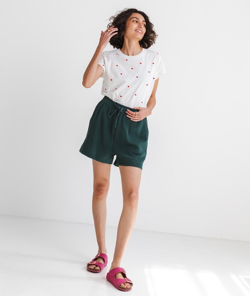 • Locker geschnittene Shorts in Petrolgrün