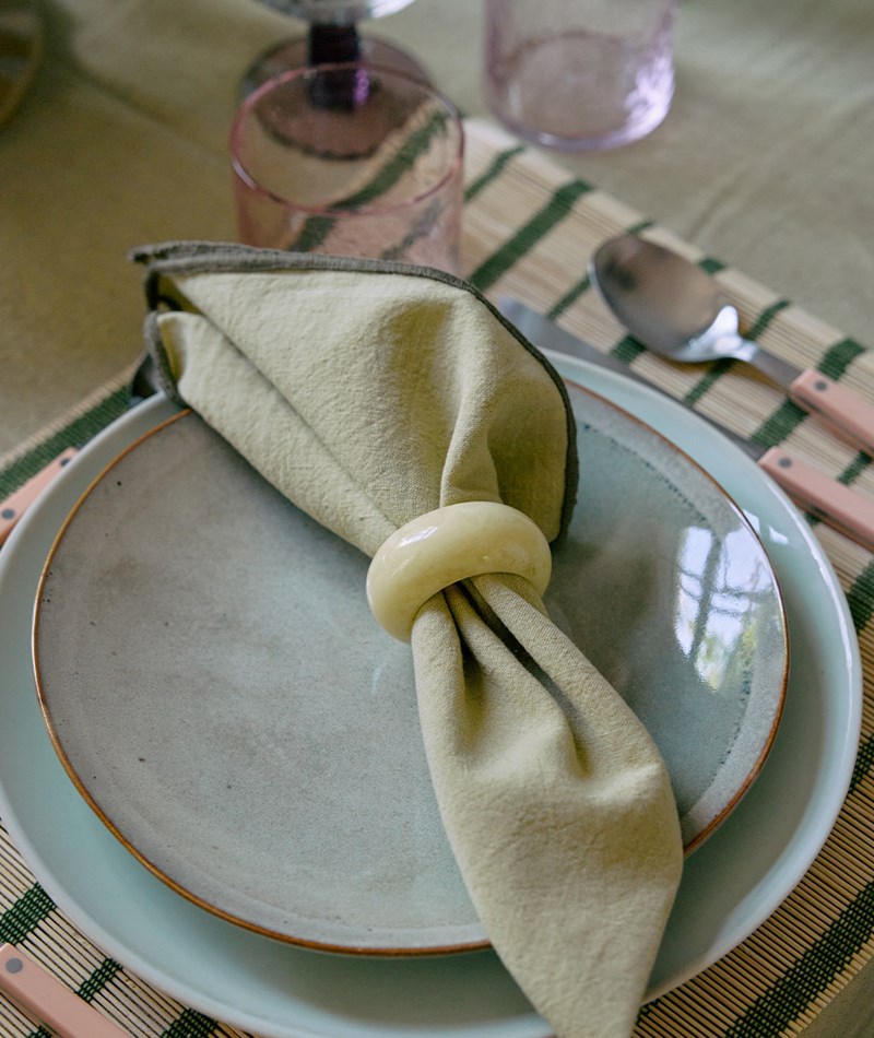 • Vier unterschiedlich geformte Serviettenringe im Set