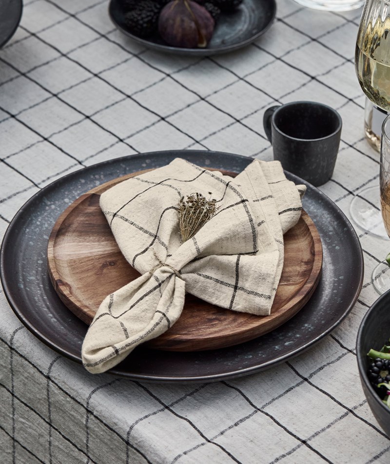 • In einem schönen Naturton mit großem Karomuster in Schwarz