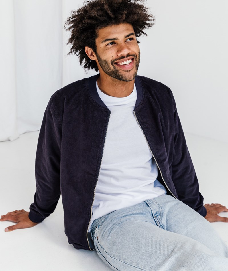 • Übergangsjacke aus dunkelblau-grauem Cord