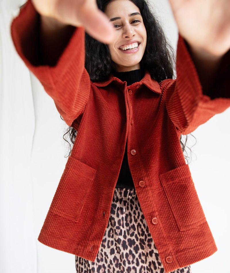 Setze ein modisches Statement mit der KAUF DICH GLÜCKLICH Jacke in Rostrot. Diese trendige Cordjacke aus 100 % Baumwolle vereint Stil und Komfort in einem. Die Jacke besticht durch ihren weichen Cordstoff, der angenehm auf der Haut liegt und gleichzeitig ein markantes Design bietet. Die rustikale Farbe "Dark Rust" sorgt für einen warmen, erdigen Look, der ideal für den Herbst und Winter ist.