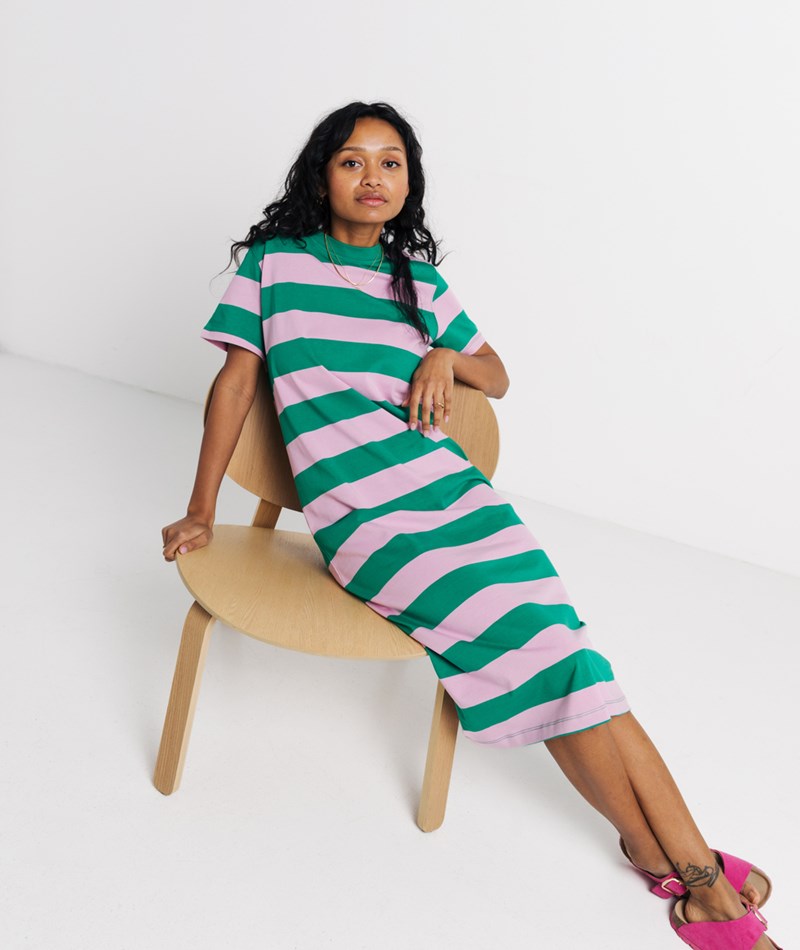 KAUF DICH GLÜCKLICH Kleid Rosa Grün gestreift aus Bio-Baumwolle