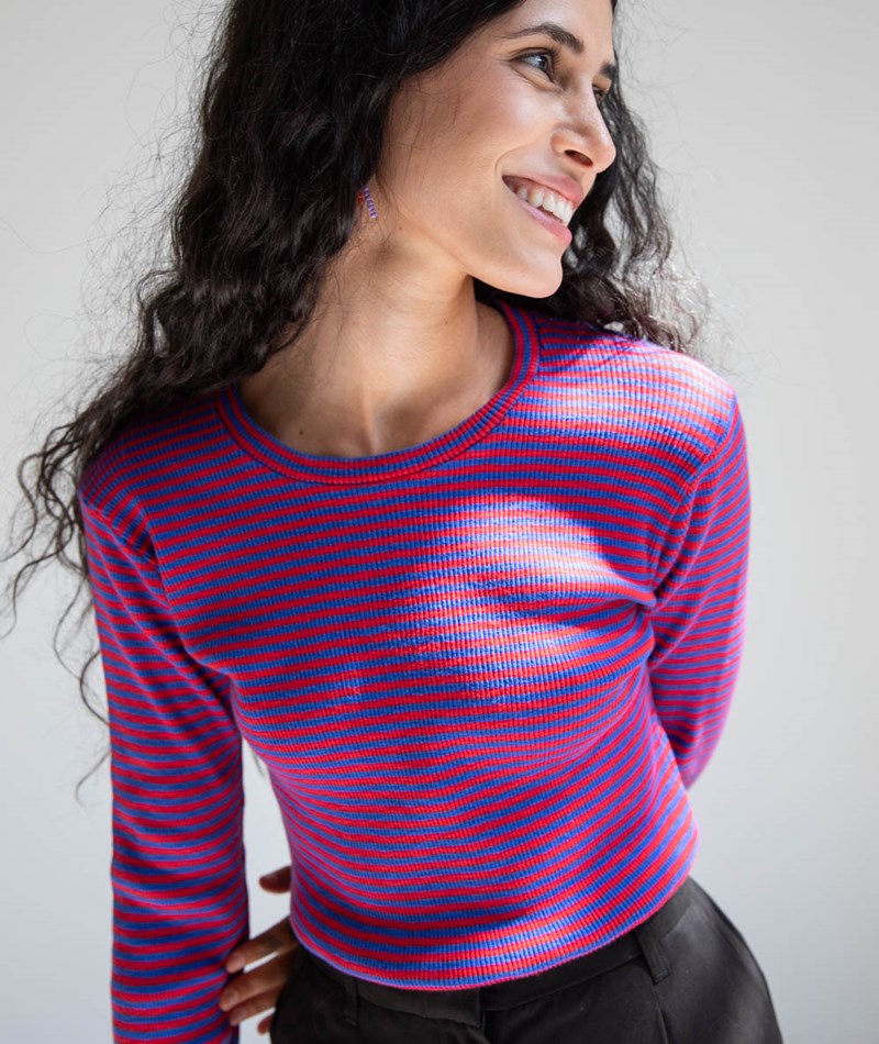 KAUF DICH GLÜCKLICH Longsleeve Rot und Blau gestreift