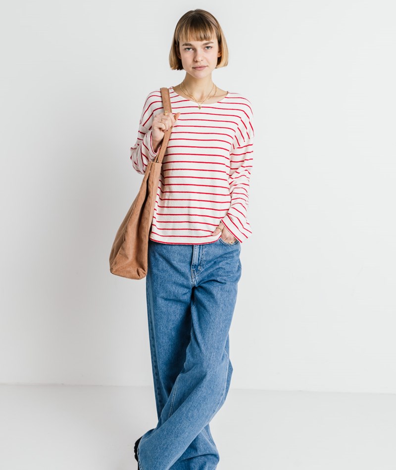 • KAUF DICH GLÜCKLICH Longsleeve Weiß und Rot gestreift