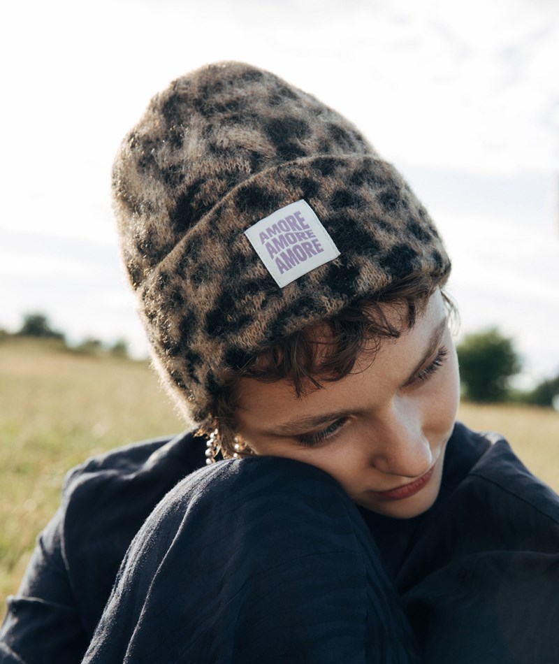 • Mütze mit All-over-Leoprint in Braun/Schwarz