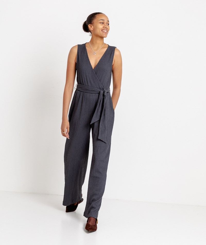 • Dunkelgrauer Jumpsuit mit breiten Trägern