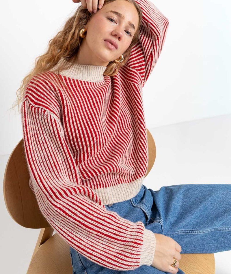 KAUF DICH GLÜCKLICH Pullover Streifen Rot Beige