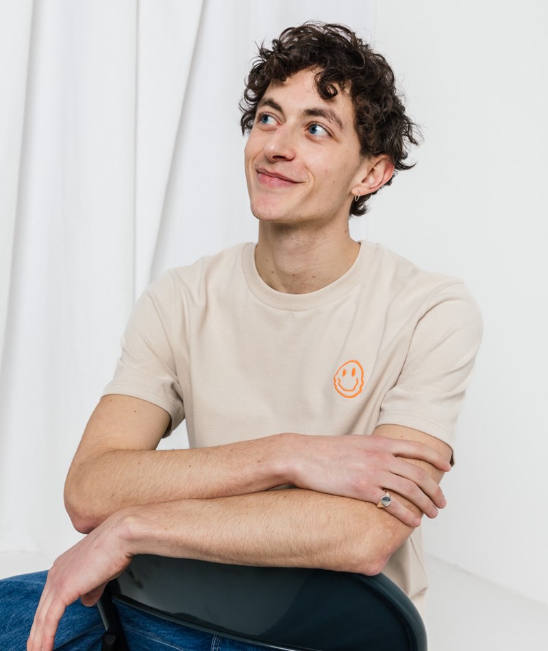 KAUF DICH GLÜCKLICH T-Shirt Smiley Orange Beige aus Bio-Baumwolle