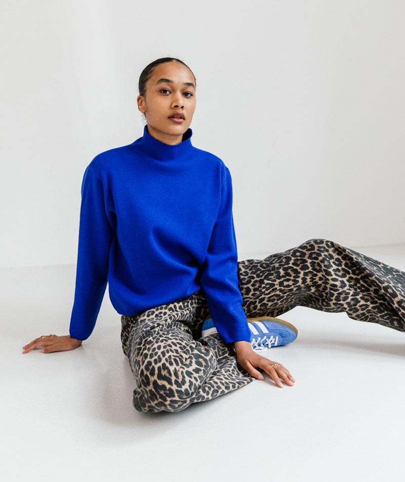 • Kobaltblauer Pullover mit feiner Strickstruktur