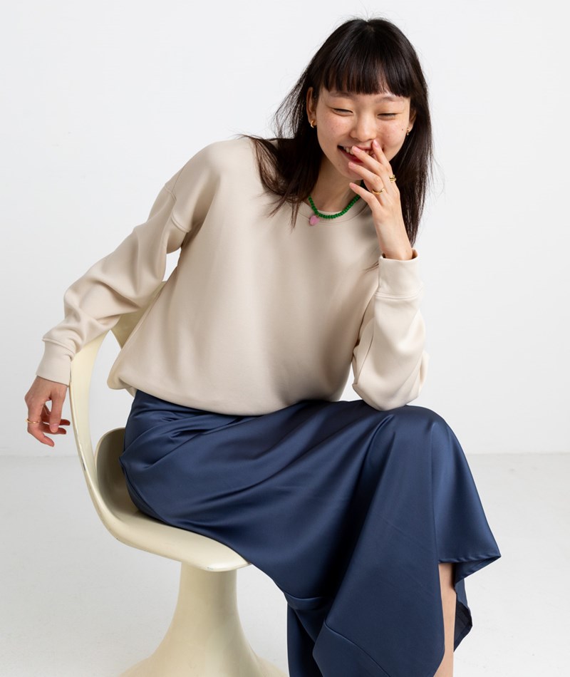 • Cremeweißer Sweater mit Rundhalsausschnitt