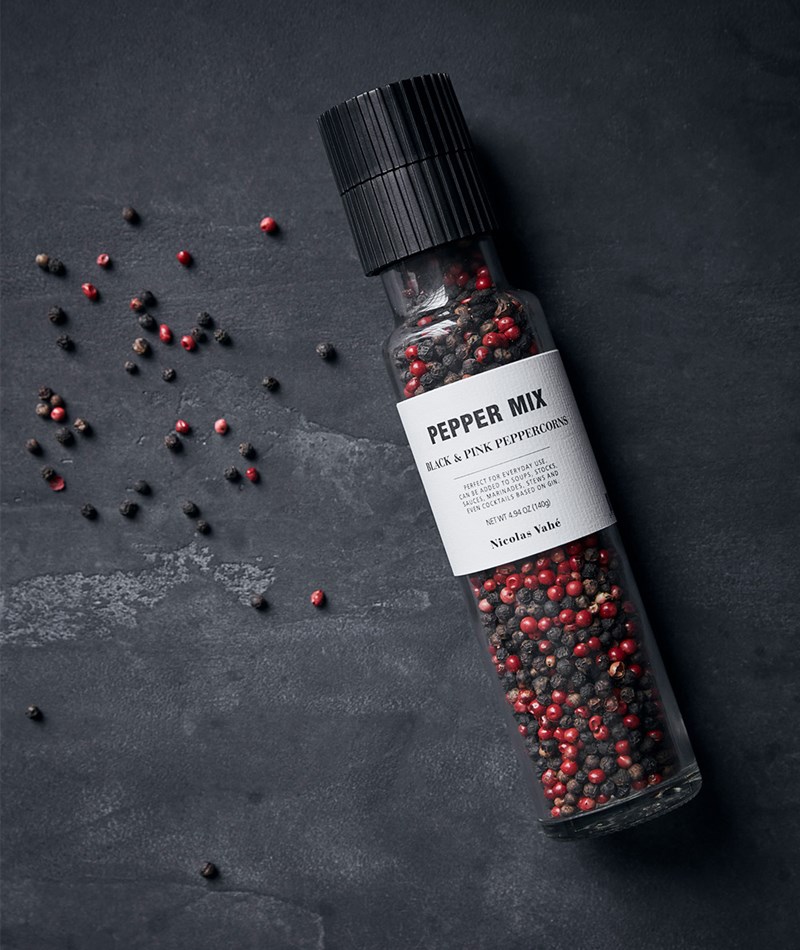 • Schwarzer Pfeffer gemixt mit rosa Pfeffer