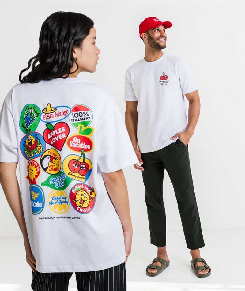 ON VACATION Fruit Stickers T-Shirt Weiß