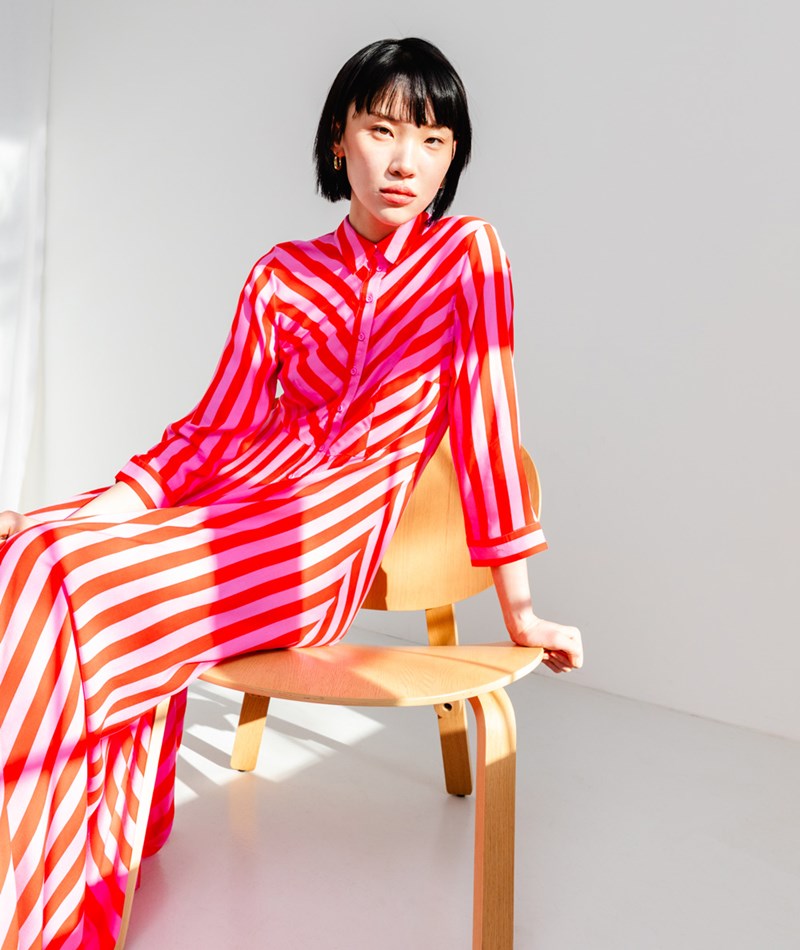 Streifen-Muster sind in dieser Saison ein absolutes Must-have und zählen zu den größten Print-Trends. Ob auf Social Media oder den Laufstegen: Bunte Streifen stehen für Lebensfreude, Selbstbewusstsein und versprühen ein positives Sommerfeeling. Der lockere Schnitt mit schmaler Taille schmeichelt Deiner Figur und sorgt gleichzeitig für ein angenehmes Tragegefühl.