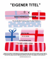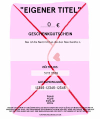 Leider können Emojis nicht auf dem Gutschein dargestellt werden. Folgende Sonderzeichen sind im Gutscheintextfeld zulässig: ,.;:-_#+*?=)(/&%$§”!<>^^°°’’´´``|~